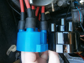 The distributor can then be removed - note the new rotor arm and flash shield. All my stuff looks pretty even if it doesn't work!